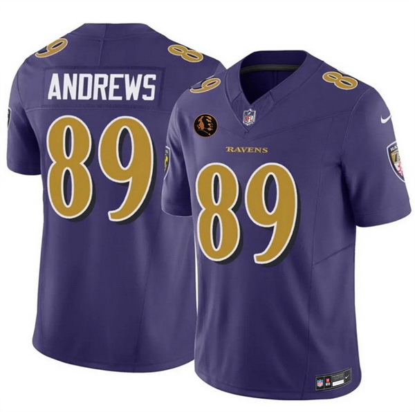 - Men Baltimore Ravens 89 Mark Andrews White With Patch Cool Base Stitched Baseball Jersey