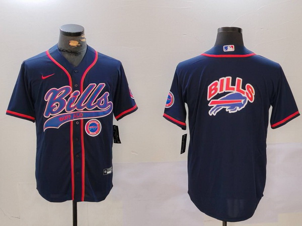 - Men Buffalo Bills big logo Blue Team Cool Base Stitched Baseball Jersey