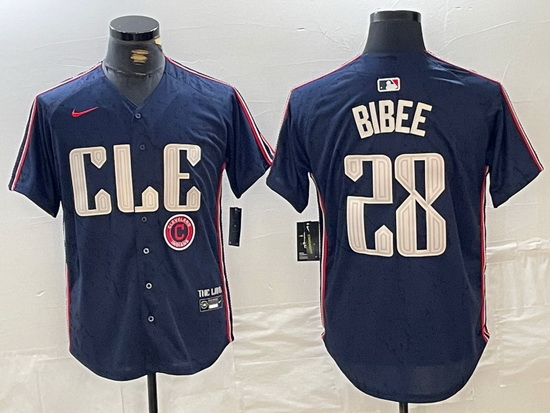 - Men Cleveland Guardians 28 Tanner Bibee Navy 2025 Alternate Limited Stitched Baseball Jersey