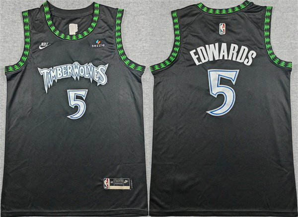 - Men Minnesota Timberwolves 5 Anthony Edwards Black City Edition Stitched Jersey
