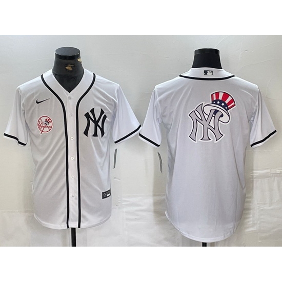 - Men New York Yankees White Team Big Logo Cool Base Stitched Baseball Jersey 19