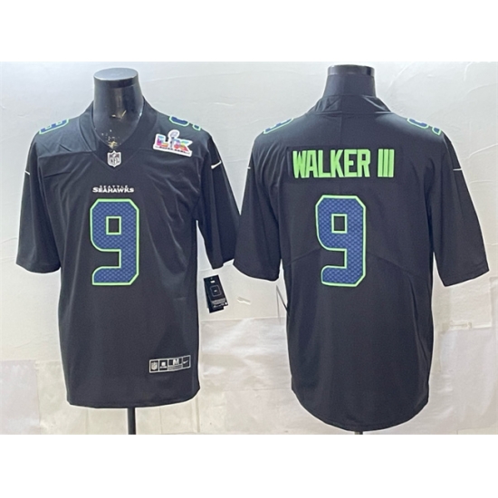 Men Seattle Seahawks 9 Kenneth Walker III Black 2025 Super Bowl LX Patch Carbon Fashion Vapor Untouchable Limited Stitched Football Jersey