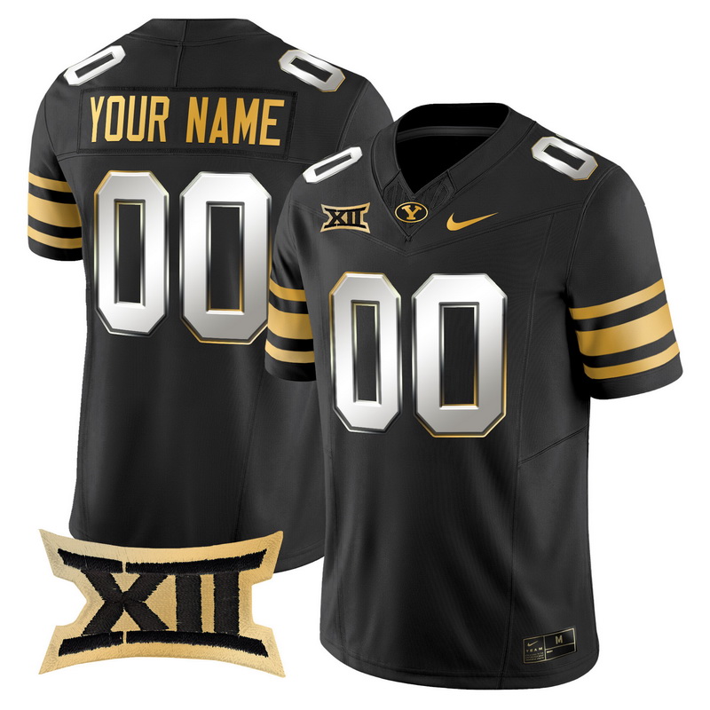 - Men Women Youth BYU Cougars 2024 Gold Vapor Limited Custom Jersey All Stitched Black Gold