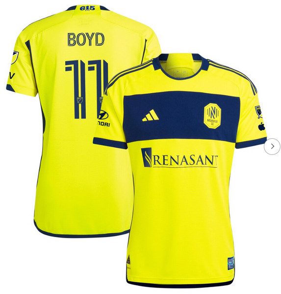 - Mens Nashville SC Tyler Boyd adidas Yellow 2024 The 615 Kit Replica Player Jersey