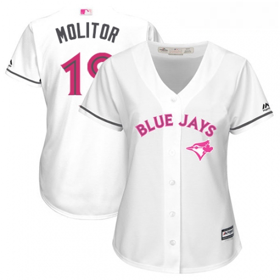 - Womens Majestic Toronto Blue Jays 19 Jose Bautista Replica Blue MLB Jersey