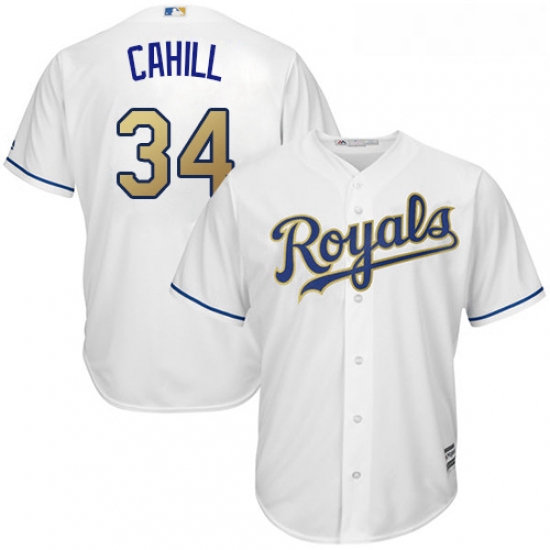 - Youth Majestic Kansas City Royals 34 Trevor Cahill Authentic White Home Cool Base MLB Jersey
